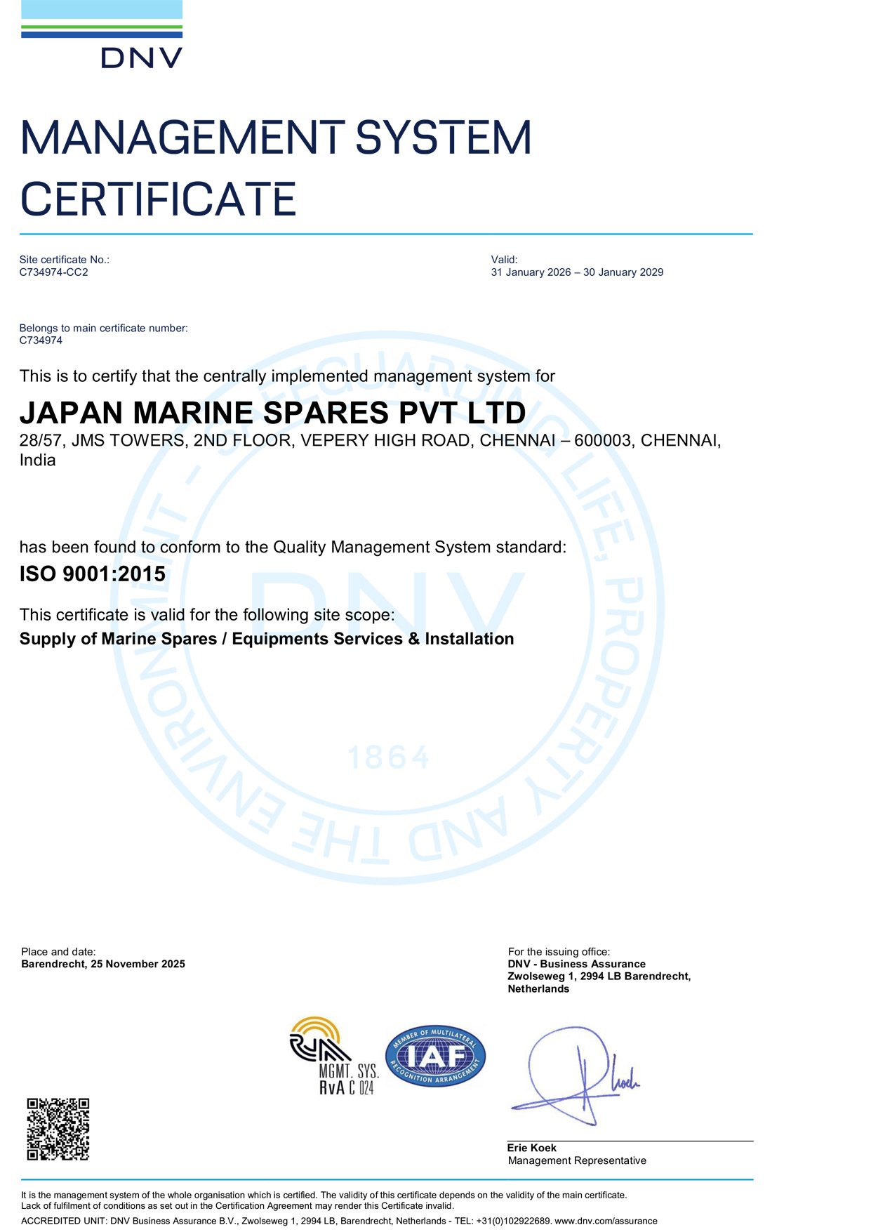 JMS is an ISO 9001:2015 certified OEM spare parts supplier. Our certifications are the differentiator in